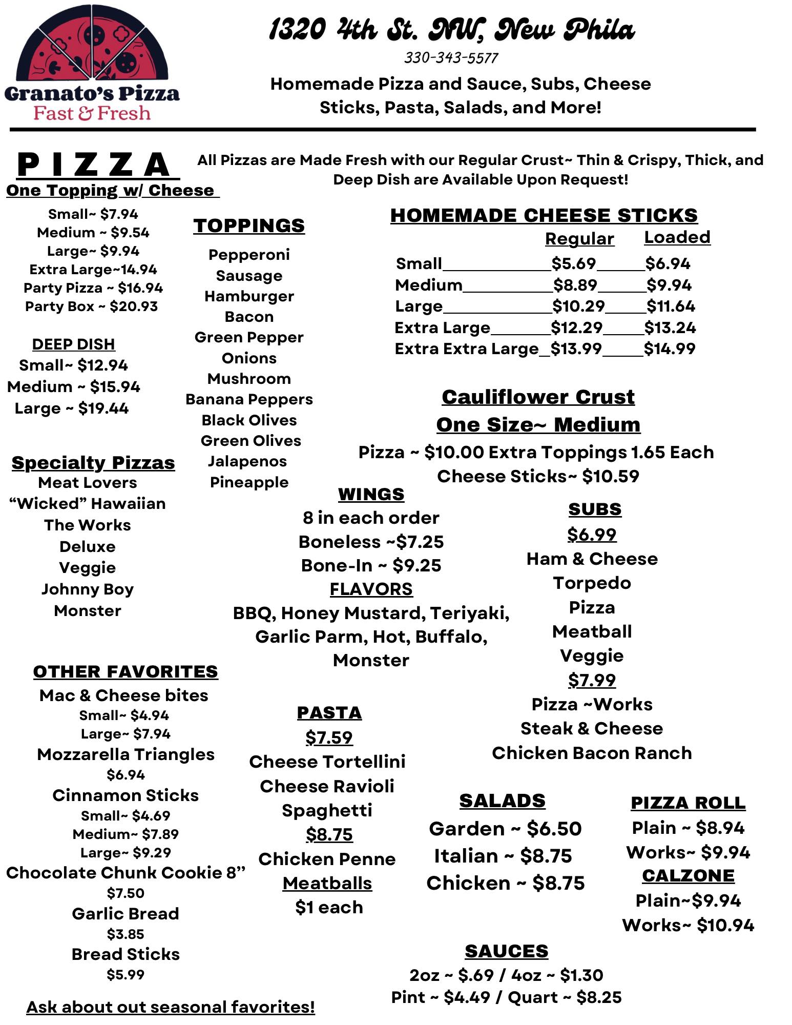 Since 1977, Granato’s Pizza has been serving Dover, New Philadelphia, and the surrounding areas with the same commitment that started it all: quality ingredients, homemade recipes, and honest service.